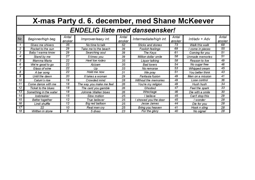 Vi tilbyder dans på alle niveauer, lige fra absolut begynder til avanceret samt fra hyggedans til konkurrencedans.